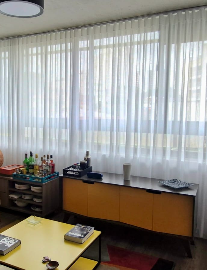 A sala de estar pede cortinas que unam beleza e funcionalidade. Combine tecidos leves como voil com forros para controlar a luz, ou opte por modelos como a Cortina Romana ou cortinas de tecidos nobres para um toque de sofisticação. Nossa loja de cortinas oferece consultoria para encontrar a solução ideal que harmonize com seus móveis e decoração.